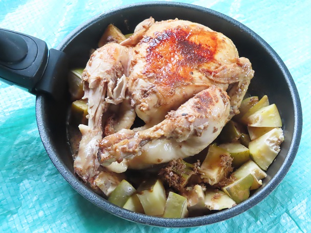 写真は、800gサイズのブラジル産”丸鶏”をまるごと1時間20分ほど煮込んだもの。一口大に切った青パパイヤも一緒に煮込みました。