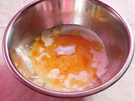 卵黄3個,コンデンスミルク50g,ココナッツミルク大さじ2を混ぜ合わせてから裏ごし器で濾す。