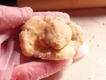 ❀西洋風の折り込みパイは、バターなどの油脂をそのまま包み込みますよね。中国式は「硬さ調節」のために小麦粉を混ぜた油生地を包み込むのです。