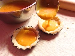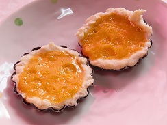 200℃のオーブンで20分焼きます。大型のタルトを切り分けて食べる西洋式パイとは異なり,小型サイズで数多く作るのが中国式の特徴です。