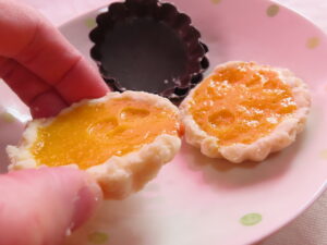マカオで食べたココナッツタルトと比べると、日本人向けに「軽い」食感ですね。本場マカオのタルトはオイル感たっぷりで重い食感ですよ。