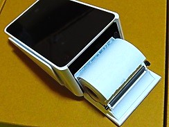現金以外の決済では、こちらの決済端末機にて操作いたします。レシートもお出しできますよ。